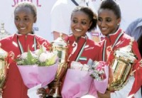 Dubai-  - Ethiopian-born United Arab Emirates (UAE) athletes Betty Desalegn Belayneh and Alia Saeed Mohammad together with Amnae Beriso of Ethiopia,...
